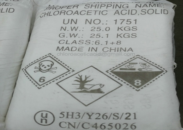 Paquete: El ácido monocloracético está disponible en 25 kilogramos o 50 kilogramos bolso cubierto con una película y los PP tejido del PE plástico.