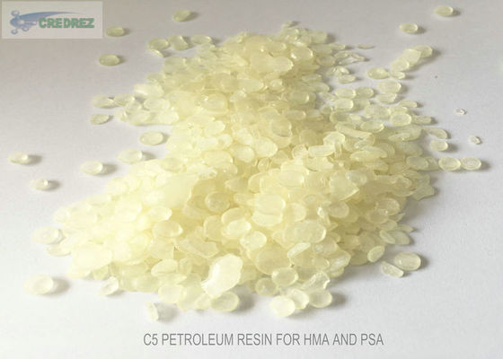 Las resinas del petróleo C5, industrial también conocidas como resinas del hidrocarburo C5, están desempeñando gradualmente papel cada vez más importante como resinas de Tackifying en la industria del pegamento y del sellante, especialmente en el uso del pegamento caliente del derretimiento y del pegamento piezosensible. Las resinas del petróleo C5 con los grados de HCR-A5090, HCR-A5094, HCR-A5100, HCR-A5101 son resinas del hidrocarburo alifático C5 para el pegamento caliente del derretimiento y piezosensibles refinada. Nuestras resinas del hidrocarburo C5 tienen una compatibilidad excelente con una amplia variedad de elastómeros incluyendo el caucho natural (NR), el caucho sintético, el copolímero de bloque del acetato del vinilo del etileno (EVA) y del estireno tal como SIS, SBS, SEBS, y SEPS. Además, también tienen una buena compatibilidad con las resinas naturales del agente de adhesividad tales como terpeno, resina y de eso derivados. Podían proporcionar funcionamiento aumentado en pegamento caliente del derretimiento y usos del PSA.